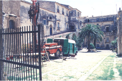 Indagini geognostiche carotaggi continui orizzontale sopra (Diga di Paisco) e verticale sotto (Palazzo Nicolaci in Noto)